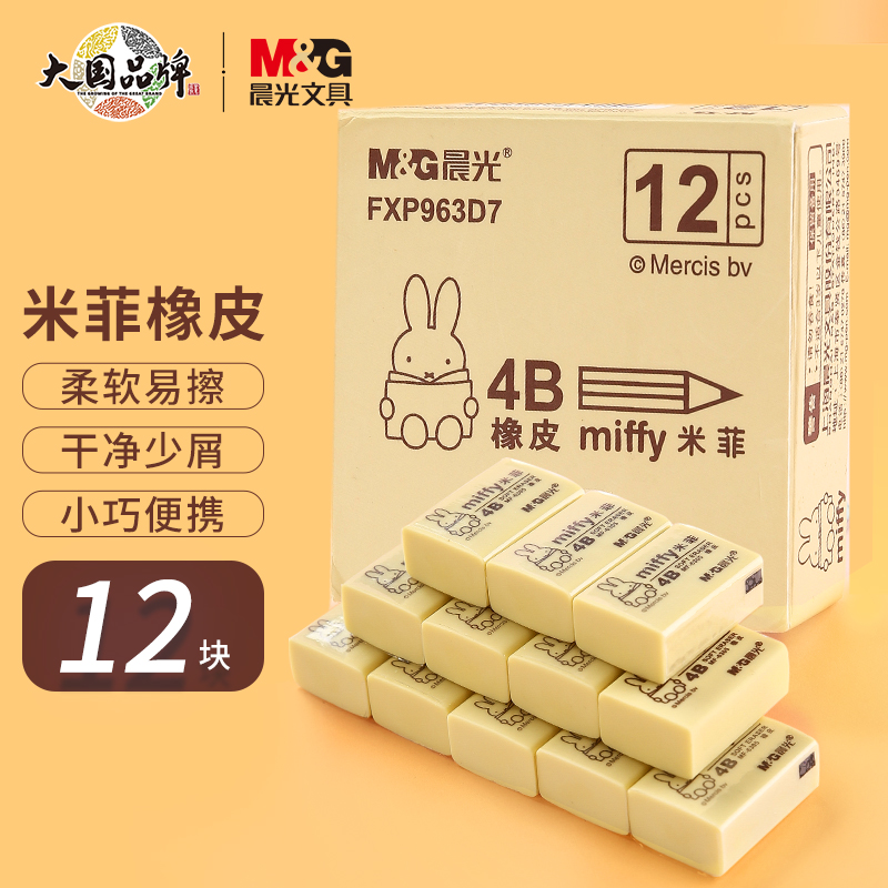 晨光(M&G)文具4B橡皮12块装 学生美术考试绘图橡皮擦 黄色小号 开学文具FXP963D7