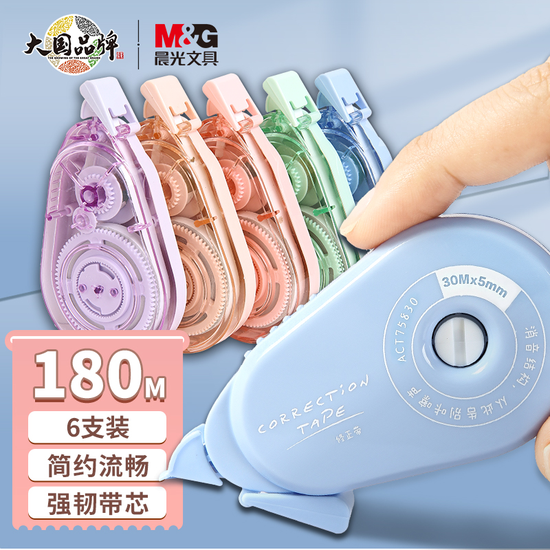 晨光(M&G)文具30m*5mm修正带180米 学生开学改正带 莫兰迪限定系列涂改带 6支/盒ACT75830
