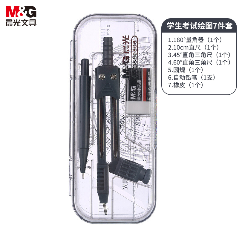 晨光(M&G)文具学生考试绘图套装(圆规+橡皮+自动铅笔+套尺四件套)学习用品组合装 7件套ACS90806