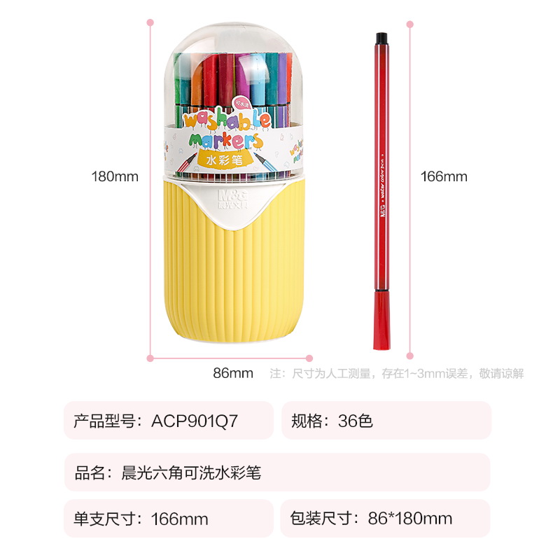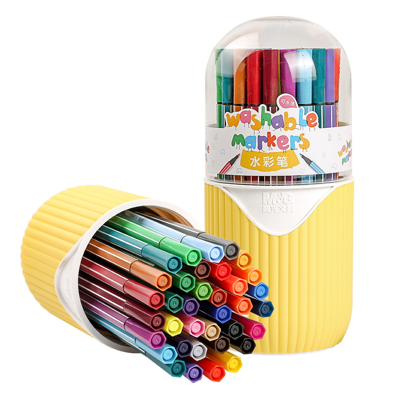 晨光(M&G)文具36色六角杆水彩笔 儿童可水洗大容量创作画笔 PP盒装涂鸦画笔 36支/筒ACP901Q7考试用品