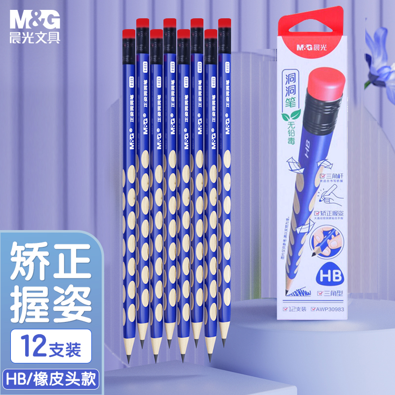 晨光(M&G)文具HB红点洞洞笔 学生三角杆木杆铅笔 儿童矫姿铅笔(带橡皮头) 12支装AWP30983