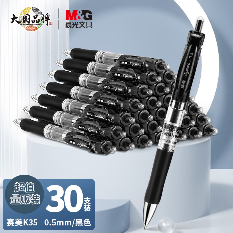 晨光(M&G)文具赛美K35/0.5mm黑色中性笔 按动笔 经典子弹头签字笔 办公用水笔 30支/盒AGPK3554A